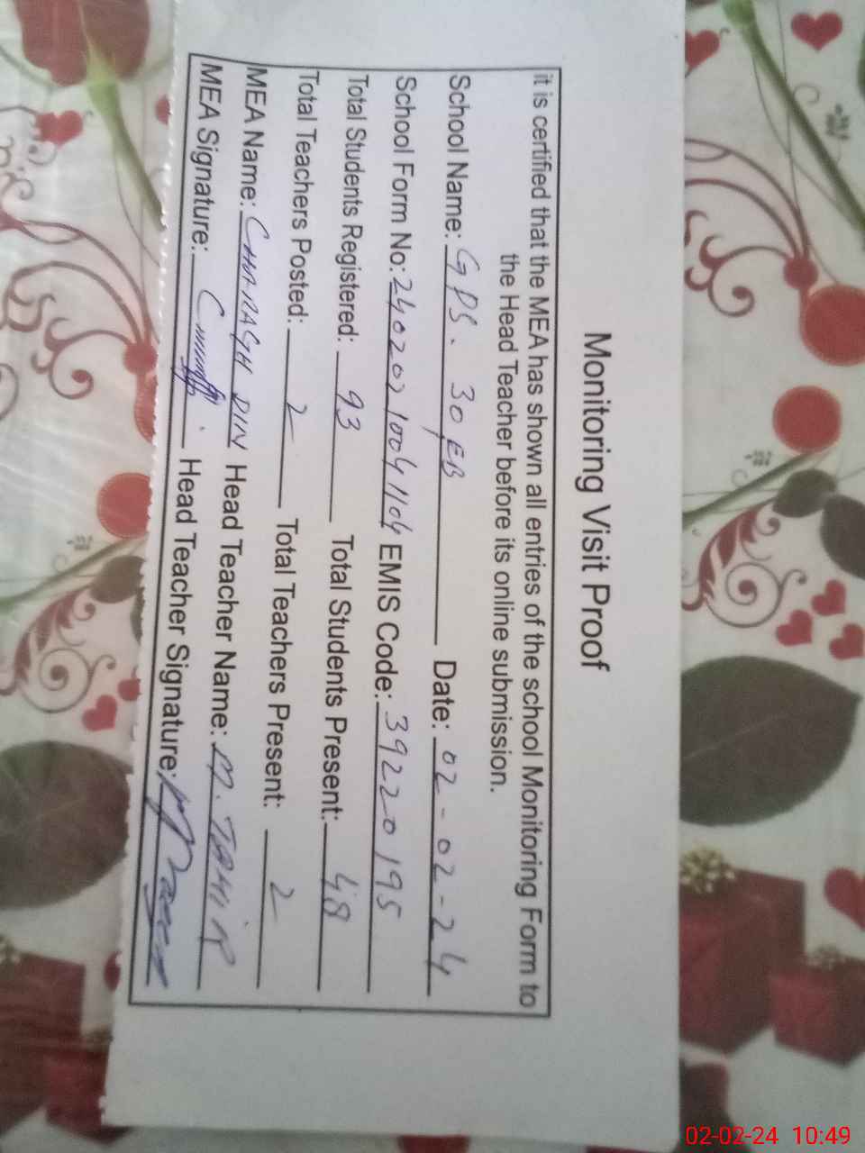 | EMIS Code: 39220195 | Name of School: GPS 30 EB | |||