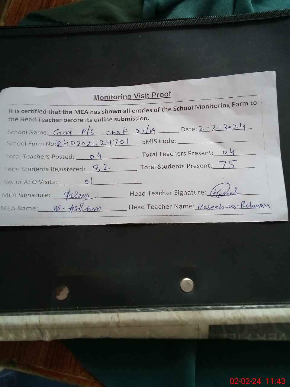 | EMIS Code: 31320205 | Name of School: GPS CHAK 27/A | |||