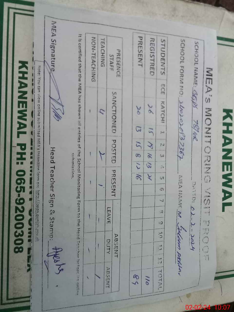 | EMIS Code: 36420466 | Name of School: GGPS 78/10-R, KACHA KHUH | |||