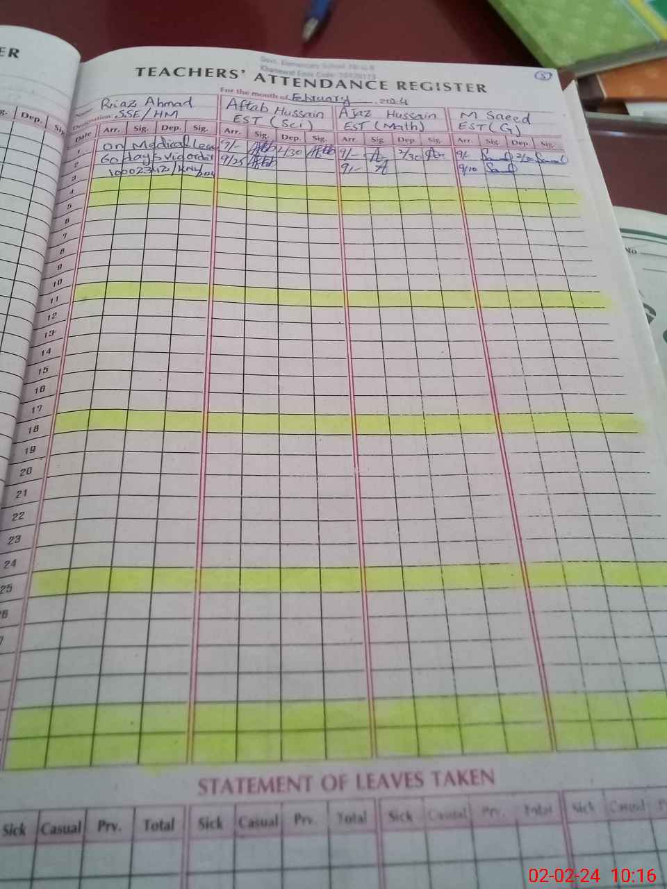 | Leave | Duty | Absent | Maternity | Medical | Ex- Pak |
