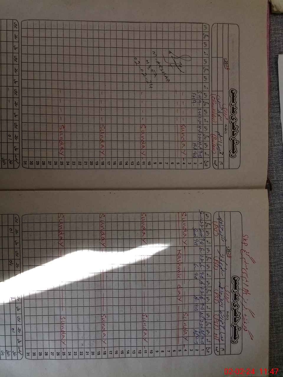 | CNIC | Full Name | Designation | R/C | Absence During Last Calender Month |