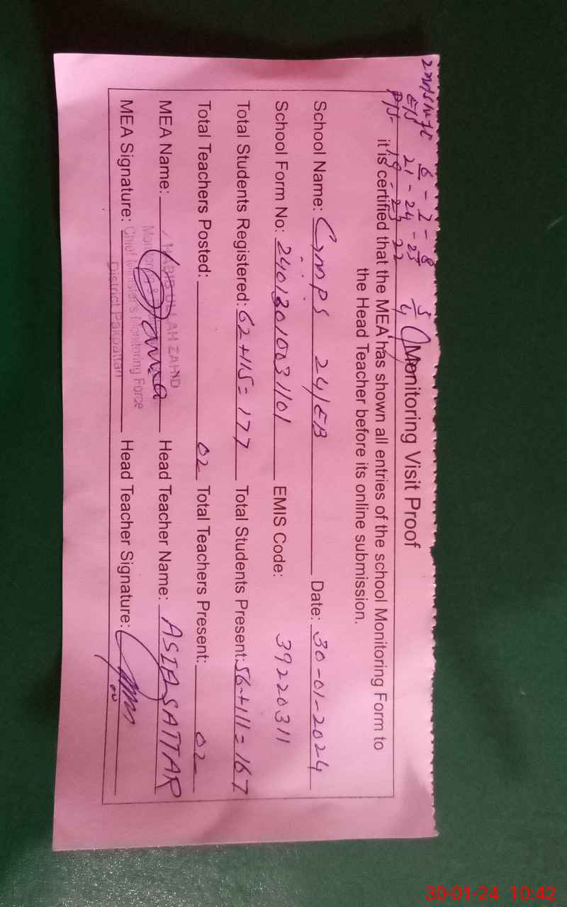 | Certified that this School was Inspected by the Undersigned MEA/DMO Today and the Information Stated Above is as Per Record. | |||||