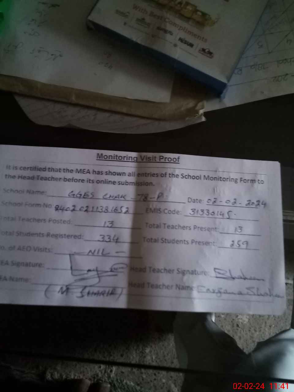 | EMIS Code: 31330145 | Name of School: GGES CHAK NO. 78/P | |||