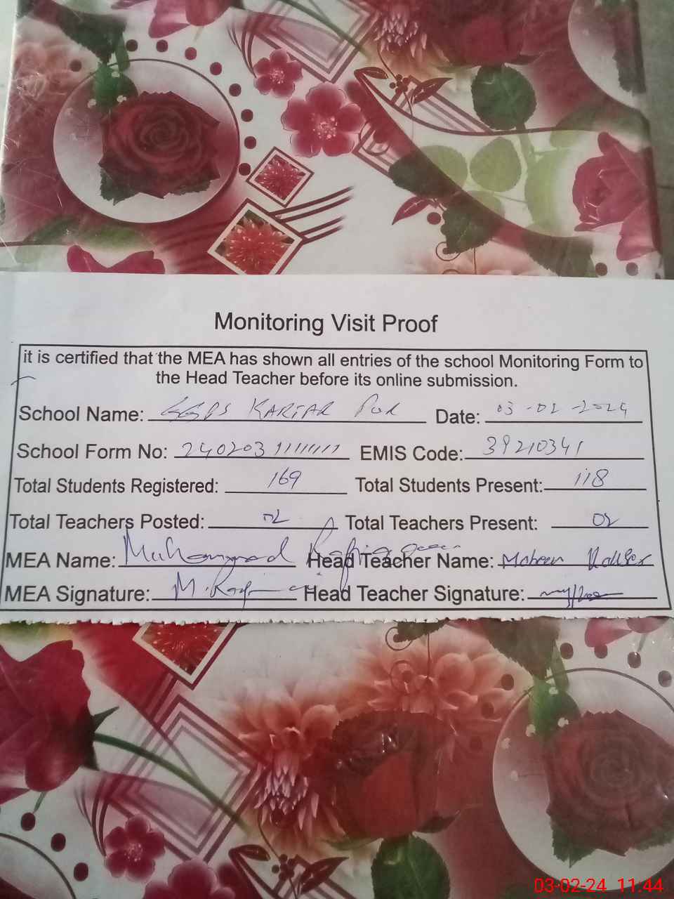 | EMIS Code: 39210341 | Name of School: GGPS KARTAR PUR PAKPATTAN | |||