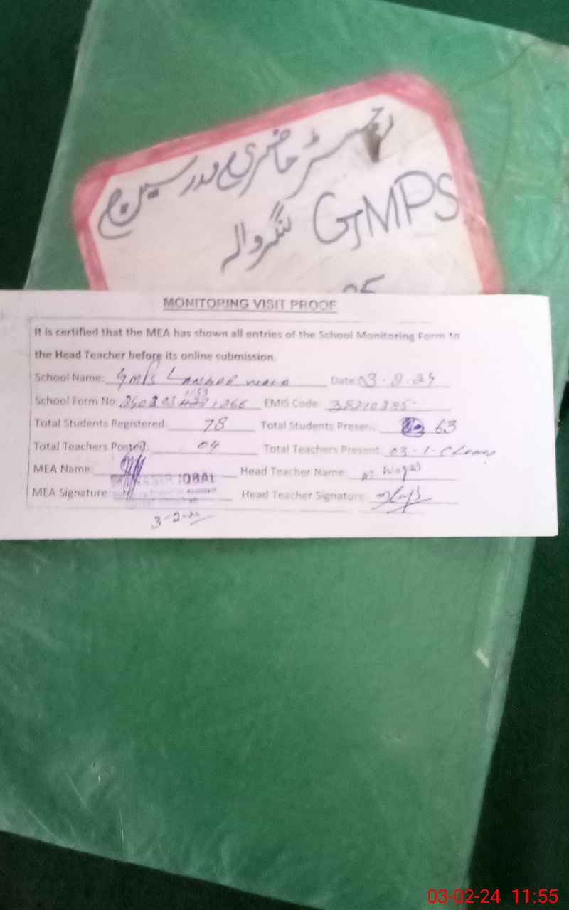 | EMIS Code: 38210285 | Name of School: GMPS LANGAR WALA | |||