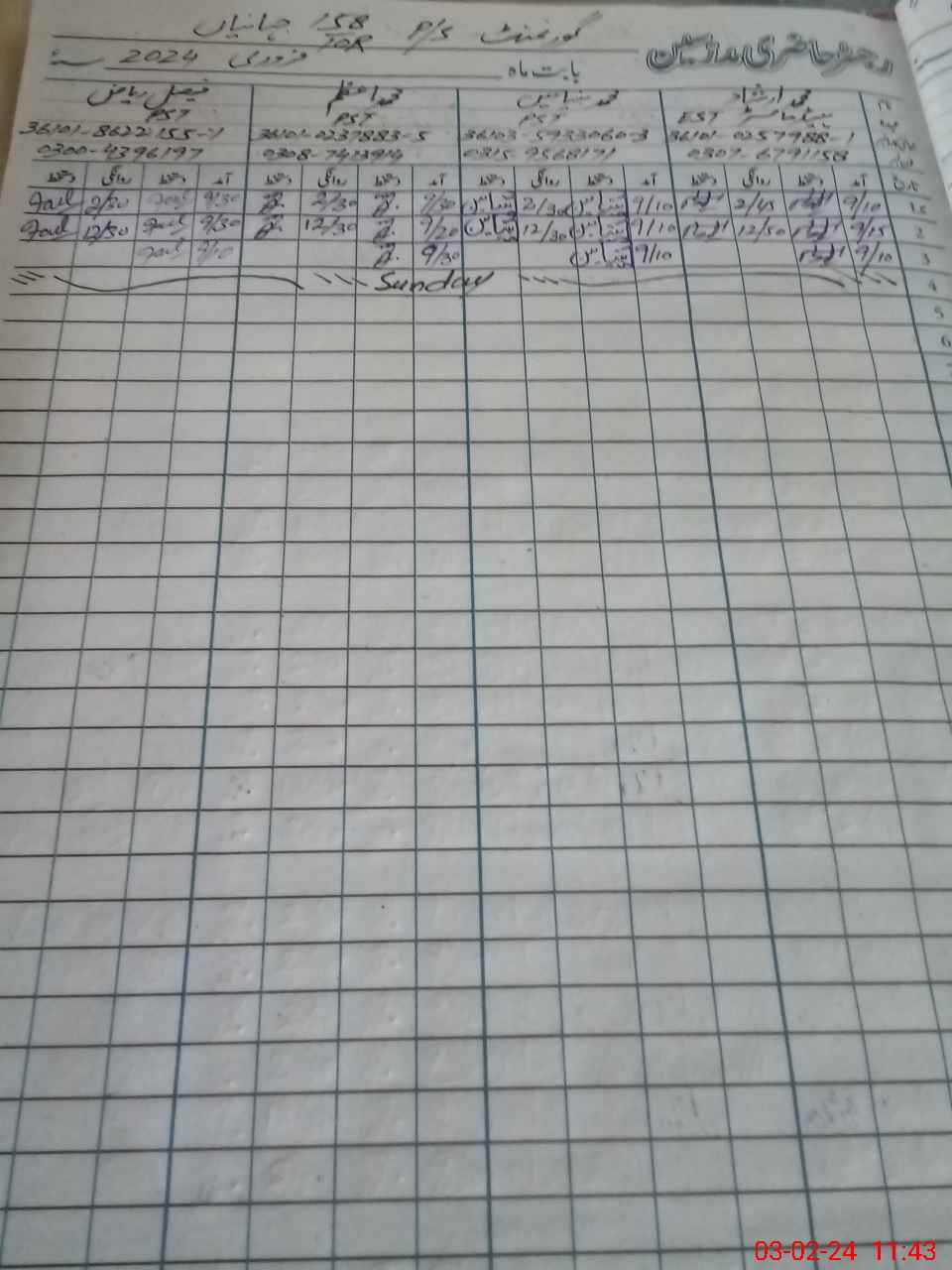 | CNIC | Full Name | Designation | R/C | Absence During Last Calender Month |