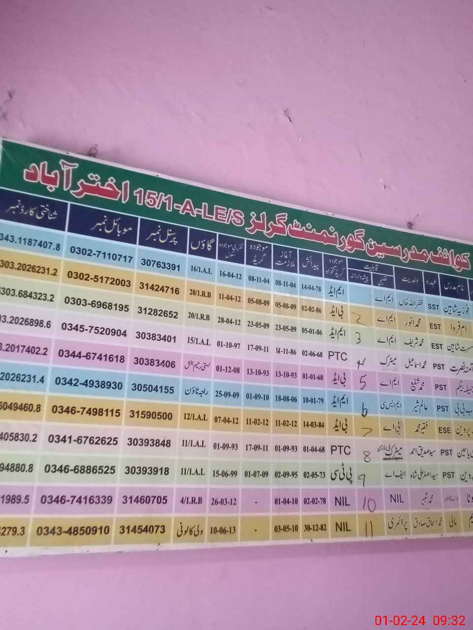 | Name: FO**** SH**** Designation: (School Headmaster's/Headmistress's) SST ARTS Phone/Cell Number: 03**** |