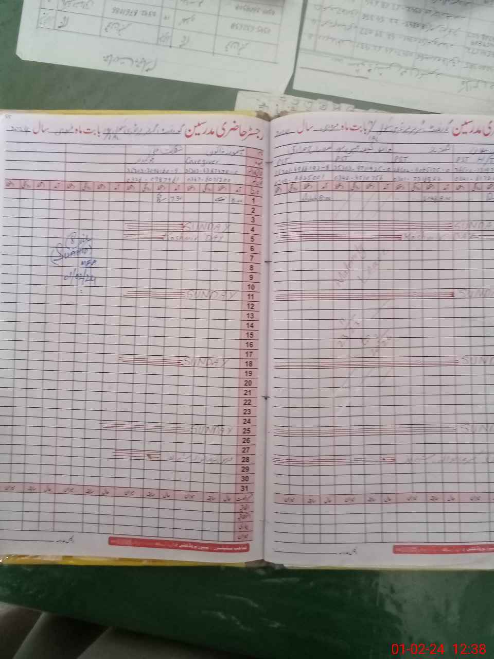 | CNIC | Full Name | Designation | R/C | Absence During Last Calender Month |