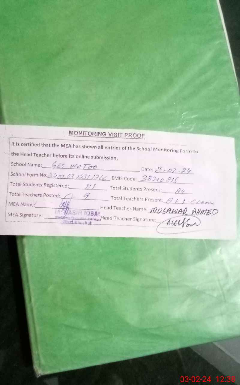 | EMIS Code: 38210815 | Name of School: GES WATOO | |||