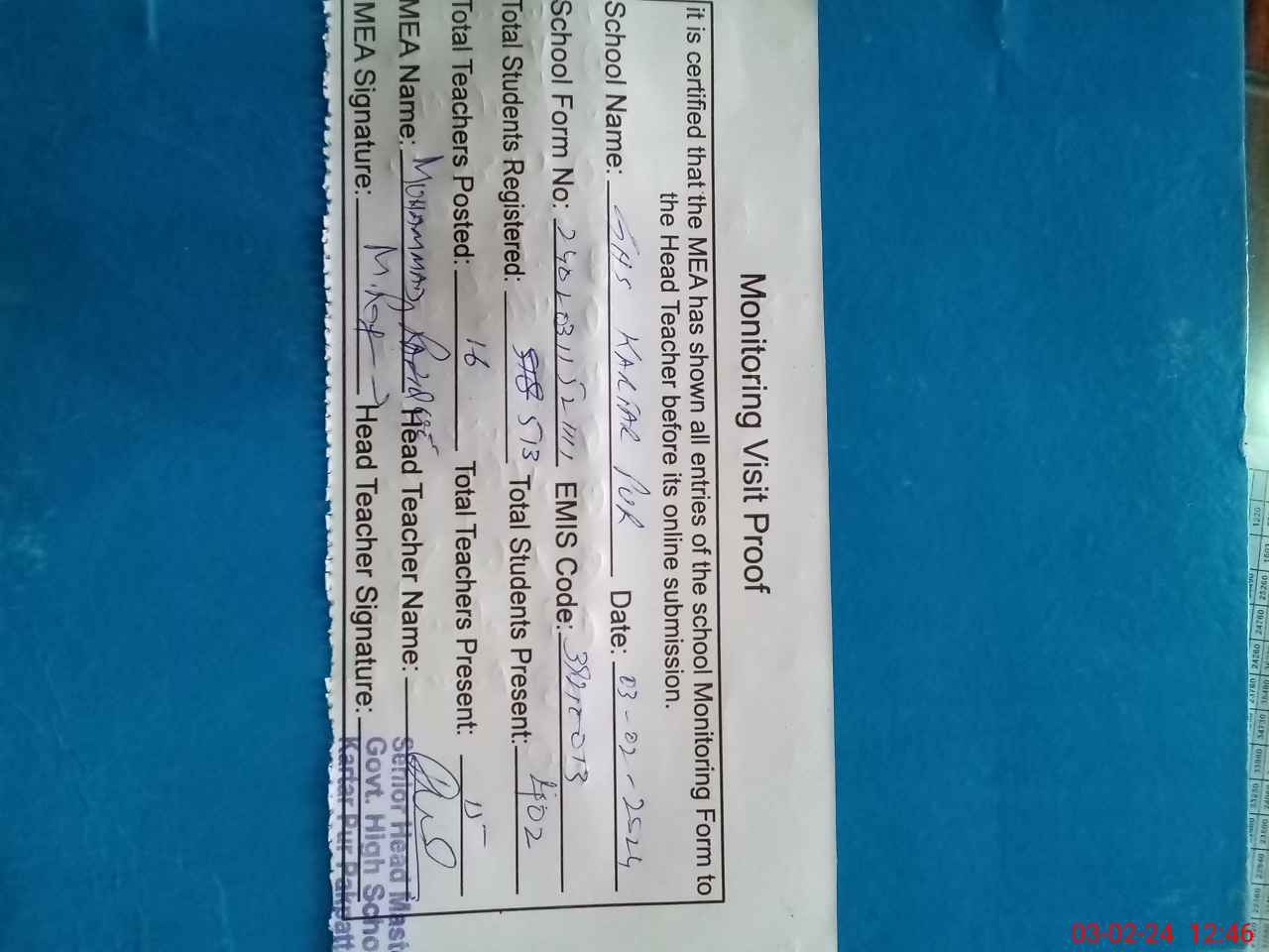 | EMIS Code: 39210013 | Name of School: GHS KARTAR PUR | |||