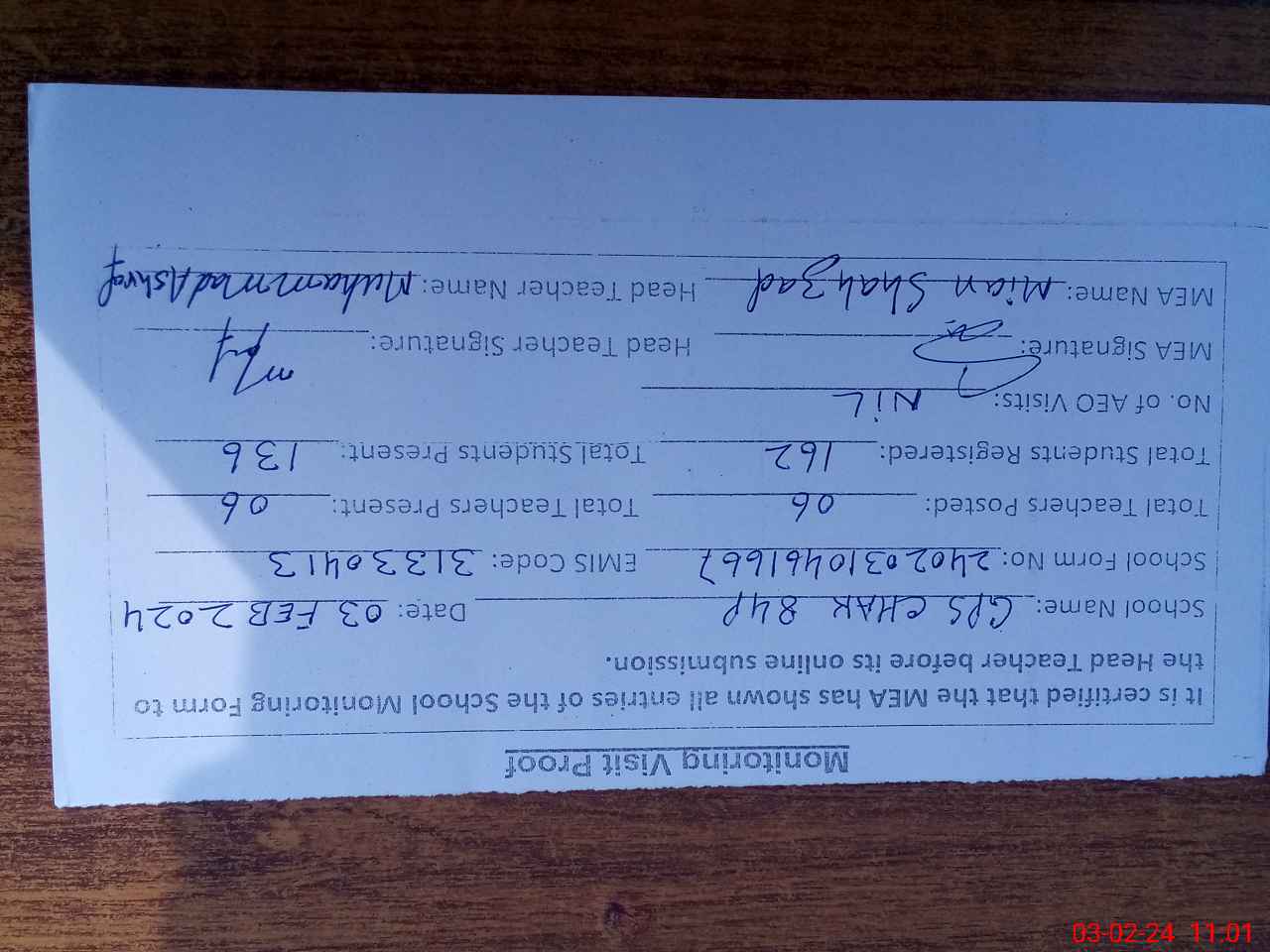 | Name: Mu**** Eh**** Sh**** Designation: (School Headmaster's/Headmistress's) PST Phone/Cell Number: 03**** |