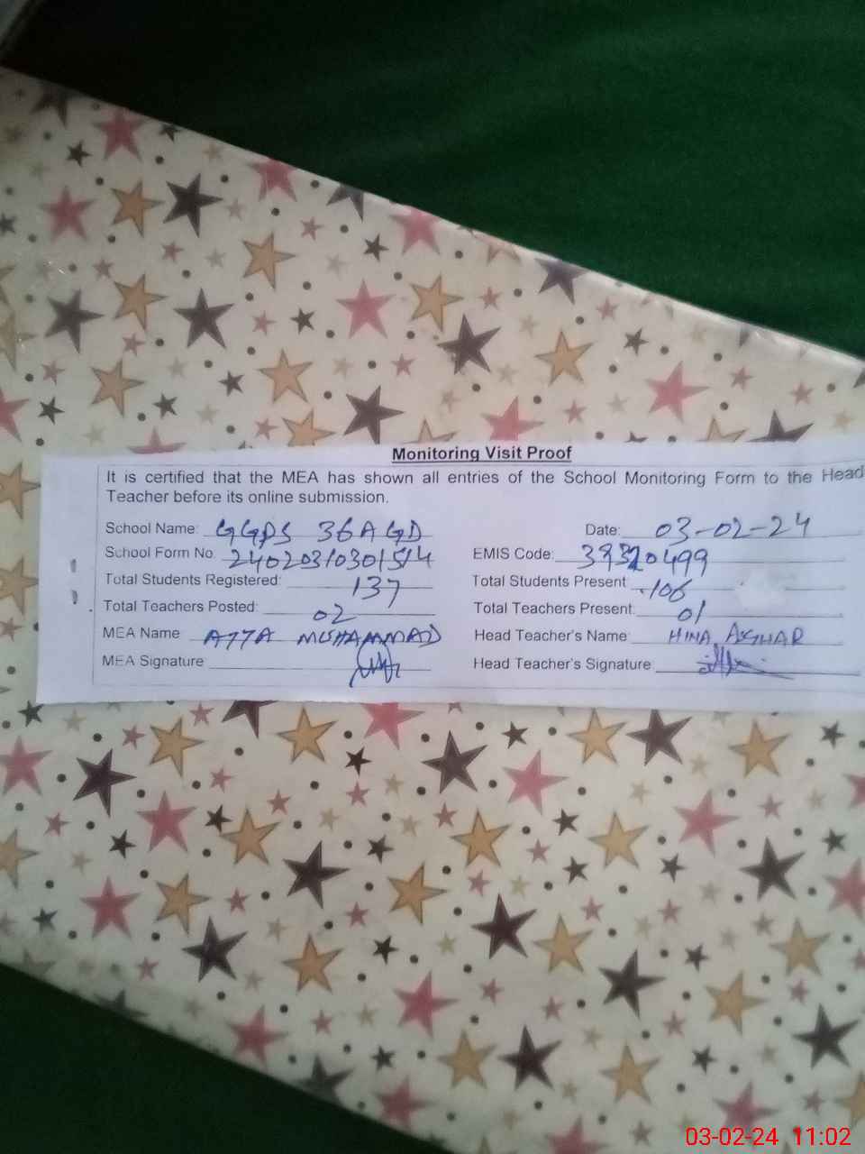 | EMIS Code: 39320499 | Name of School: GGPS 36-A/G.D | |||