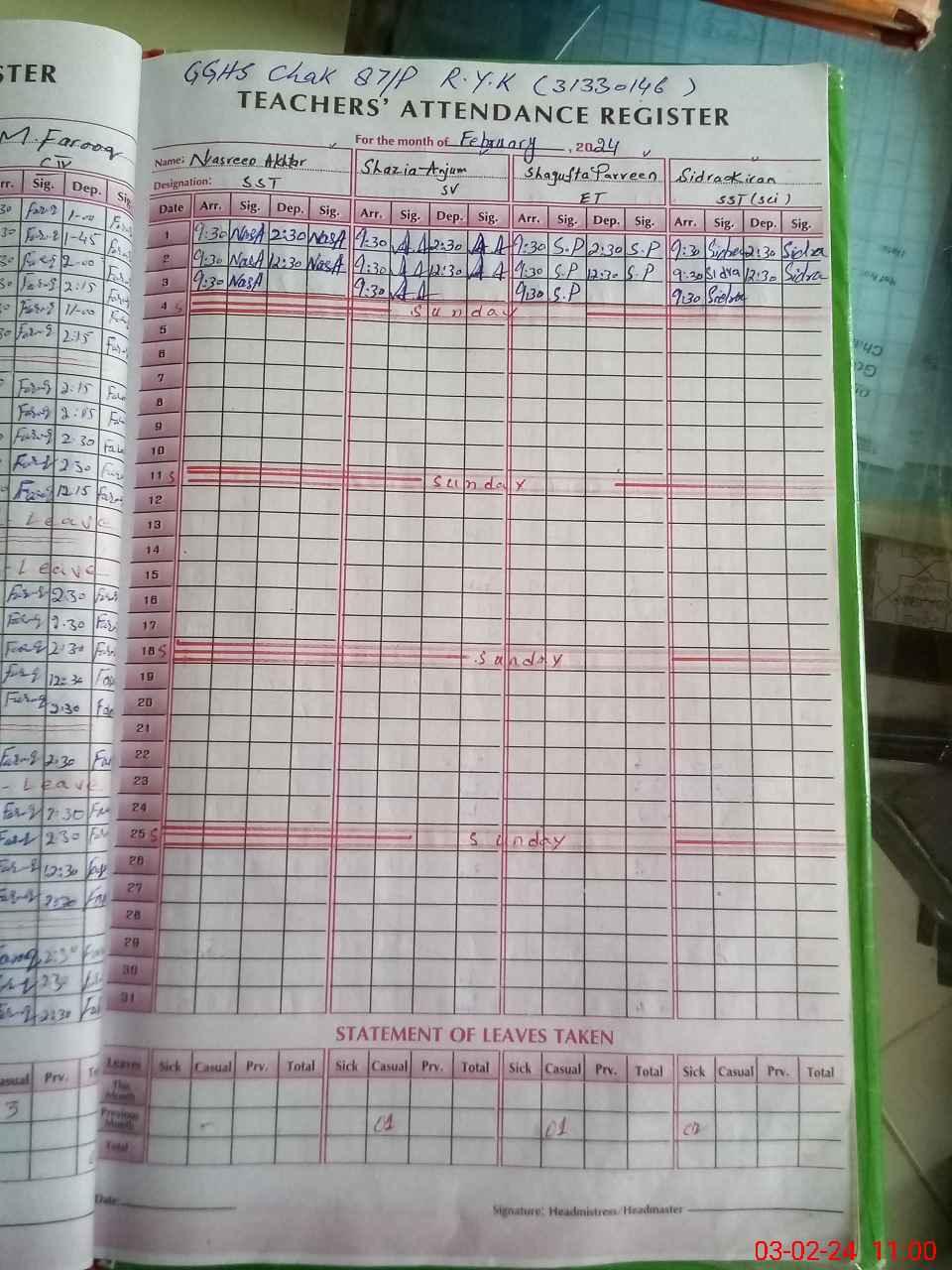 | 38**** | Sa**** Si**** Kh**** | EST(GENERAL) | Temporary | 0 | 0 | 0 | 0 | 0 | 0 | 0 | 0 | 0 | Casual |