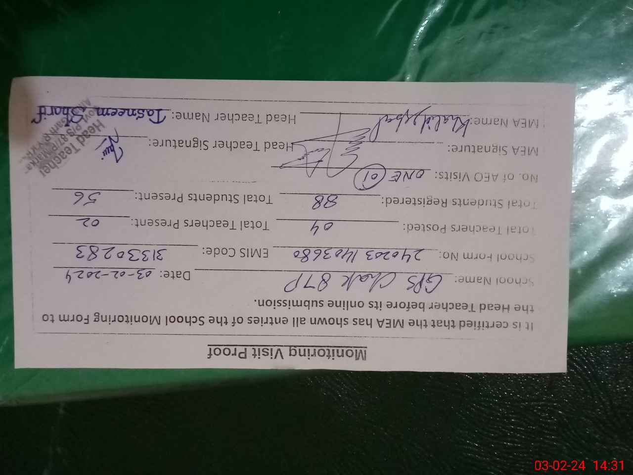 | Certified that this School was Inspected by the Undersigned MEA/DMO Today and the Information Stated Above is as Per Record. | |||||