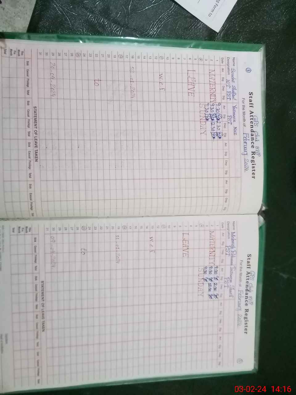 | 31**** | Me**** Re**** | 2 | 21 | 0 | 0 | 21 | 0 | 0 | 0 | 0 | 0 | Maternity | |