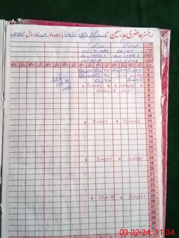 | Name: RU**** KO**** Designation: (School Headmaster's/Headmistress's) PST Phone/Cell Number: 03**** |