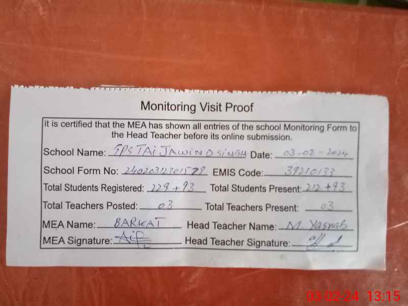 | EMIS Code: 39210133 | Name of School: GPS TAI JAWIND SINGH | |||