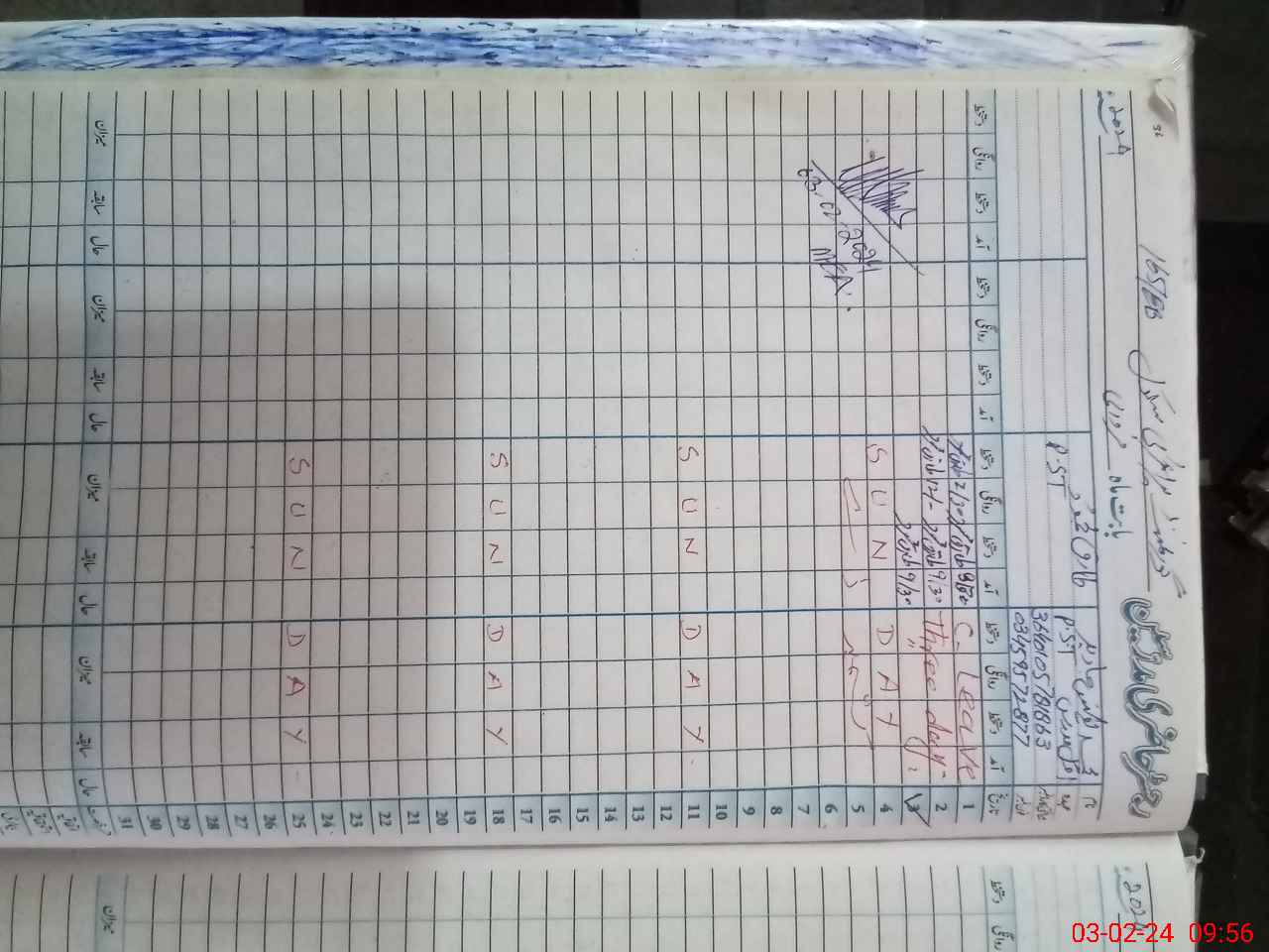 | CNIC | Full Name | Designation | R/C | Absence During Last Calender Month |