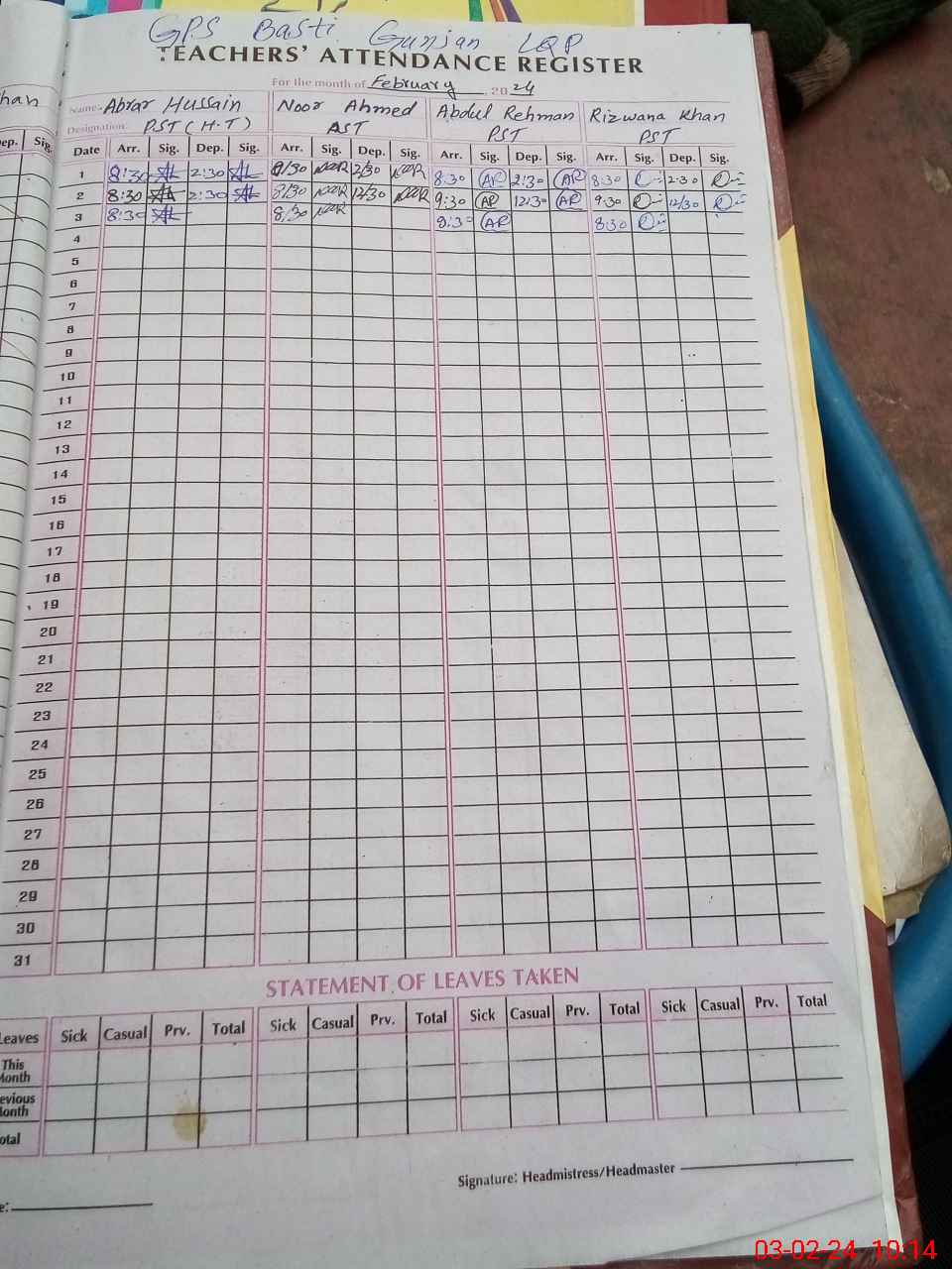| Name: Ab**** Re**** Designation: (School Headmaster's/Headmistress's) PST Phone/Cell Number: 03**** |