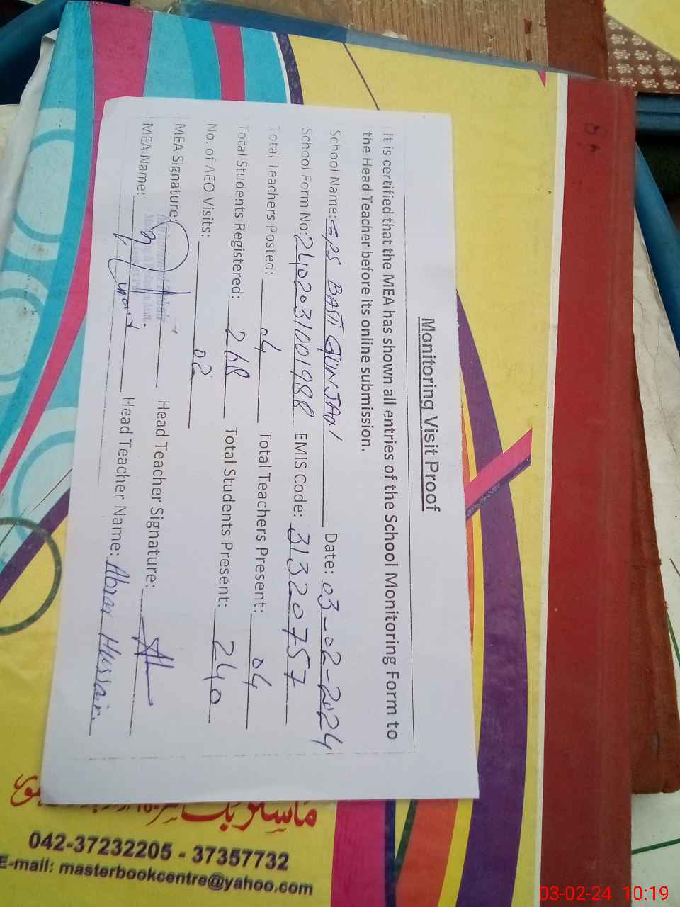 | Certified that this School was Inspected by the Undersigned MEA/DMO Today and the Information Stated Above is as Per Record. | |||||