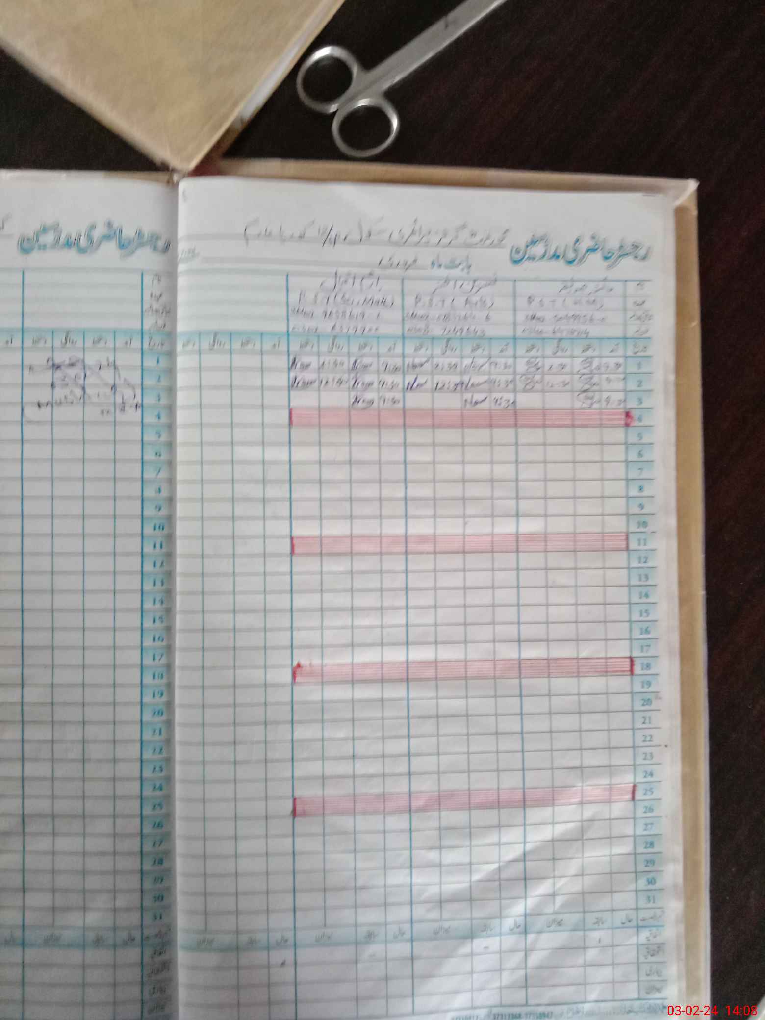 | CNIC | Full Name | Designation | R/C | Absence During Last Calender Month |