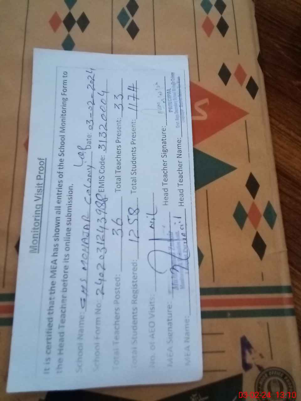 | EMIS Code: 31320004 | Name of School: GHS MOHAJAR COLONY | |||