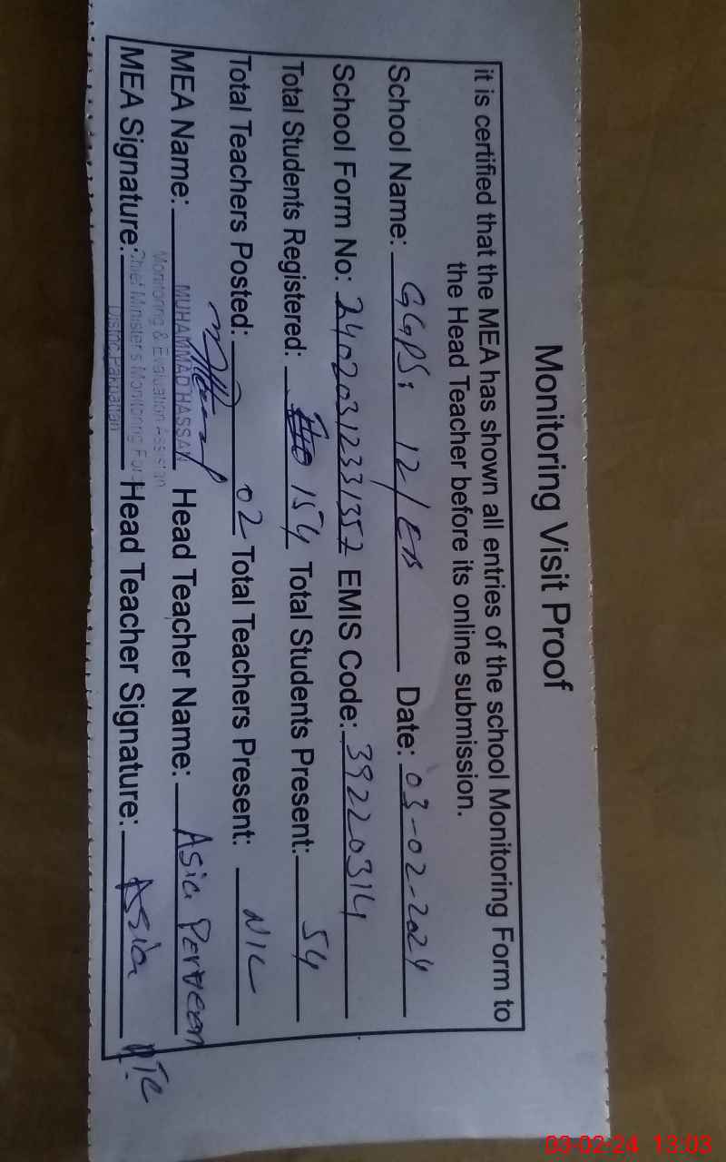 | EMIS Code: 39220314 | Name of School: GGPS 12 EB | |||