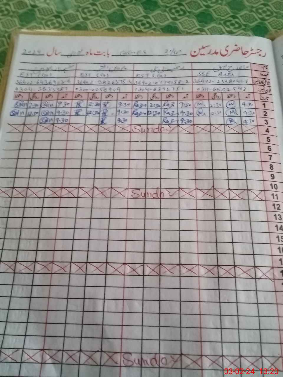 | Name: MA**** RU**** LE**** Designation: (School Headmaster's/Headmistress's) S.S.T.( ARTS) Phone/Cell Number: 03**** |