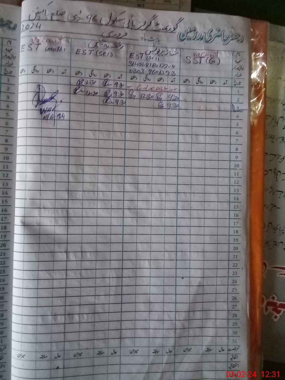 | Name: Ra**** Ja**** Designation: (School Headmaster's/Headmistress's) EST Phone/Cell Number: 03**** |