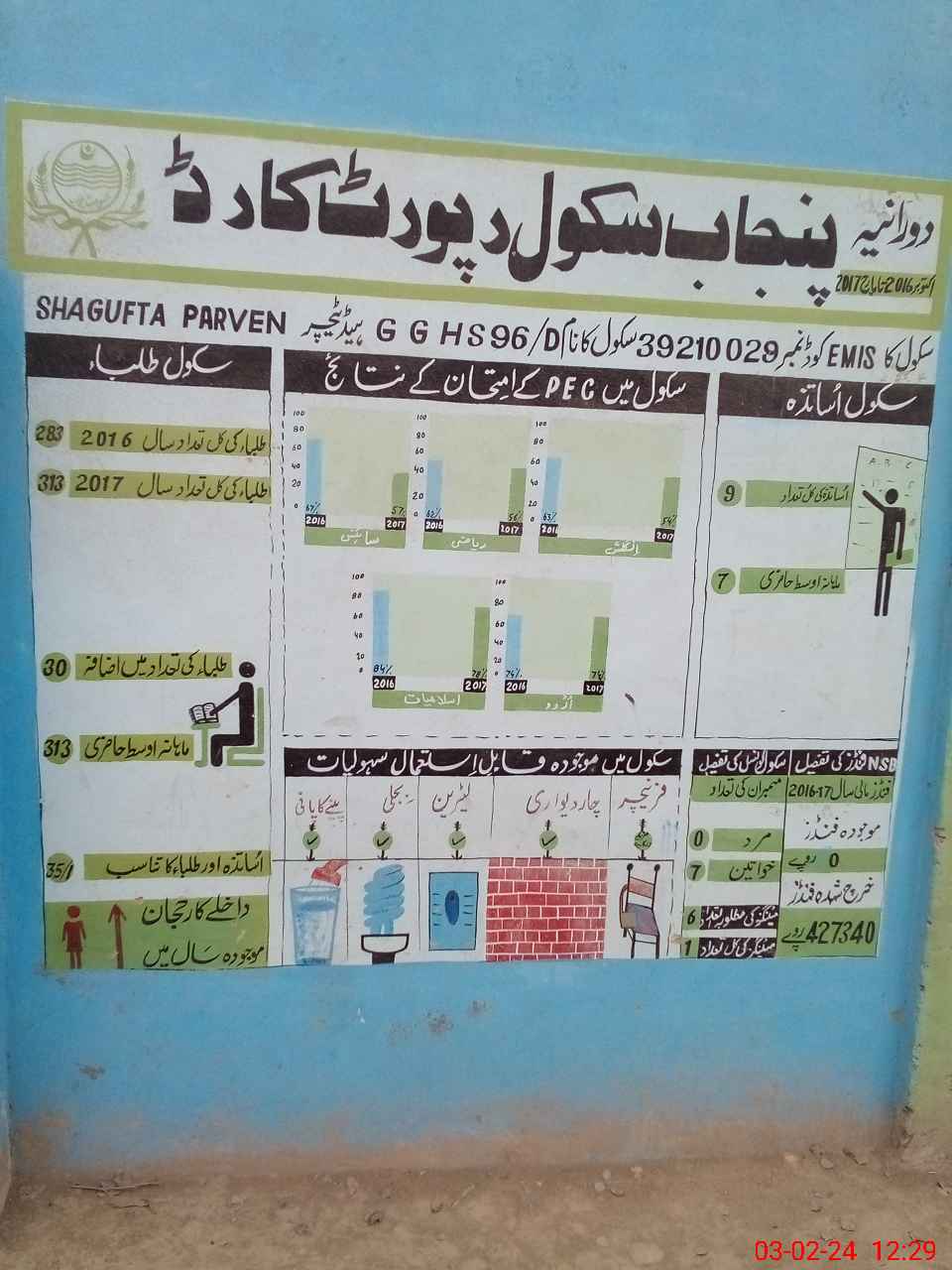 | EMIS Code: 39210029 | Name of School: GGHS CHAK NO. 96 D | |||