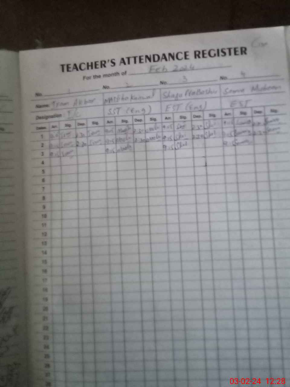 | Name: IR**** AK**** Designation: (School Headmaster's/Headmistress's) H Miss (SST) Phone/Cell Number: 03**** |