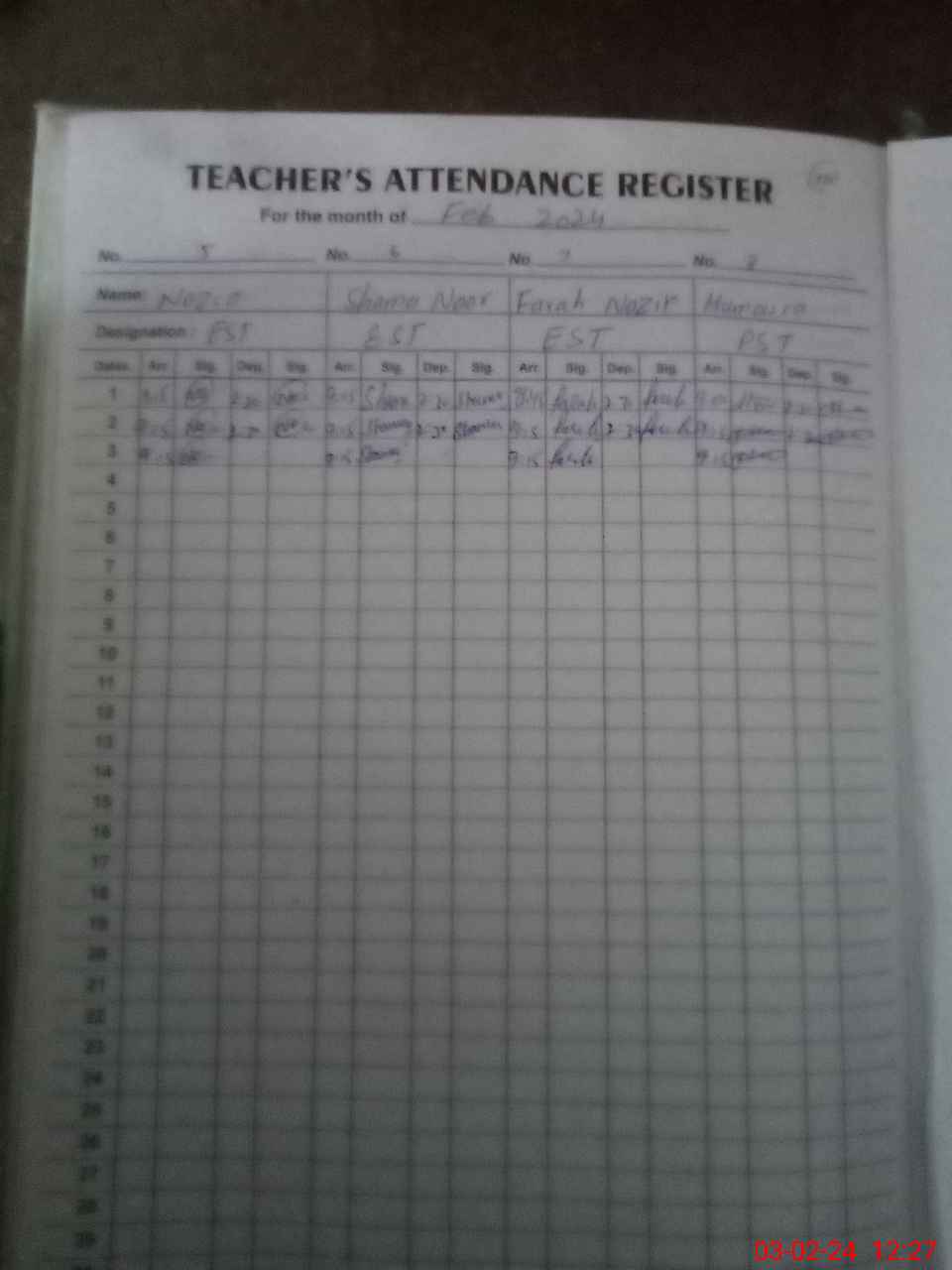 | Attendance Register | Head Teacher | MEA with School | Visit Proof |
