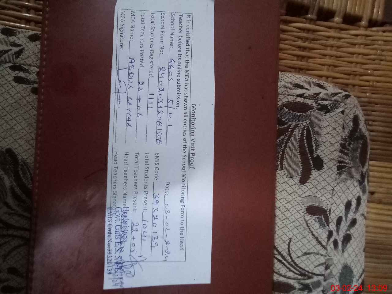 | Certified that this School was Inspected by the Undersigned MEA/DMO Today and the Information Stated Above is as Per Record. | |||||