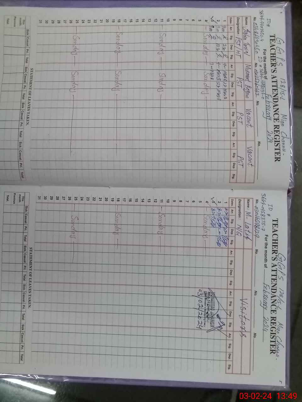 | Remarks (Use Separate Page if Required): THIS SCHOOL IS INSAF AFTERNOON SCHOOL NSB GRANTS RECORDS IS NOT MAINTAINED LESSON PLANS ARE NOT AVAILABLE RANDOM CLASS TWO IS NOW IN CLASS FOUR | |||||
