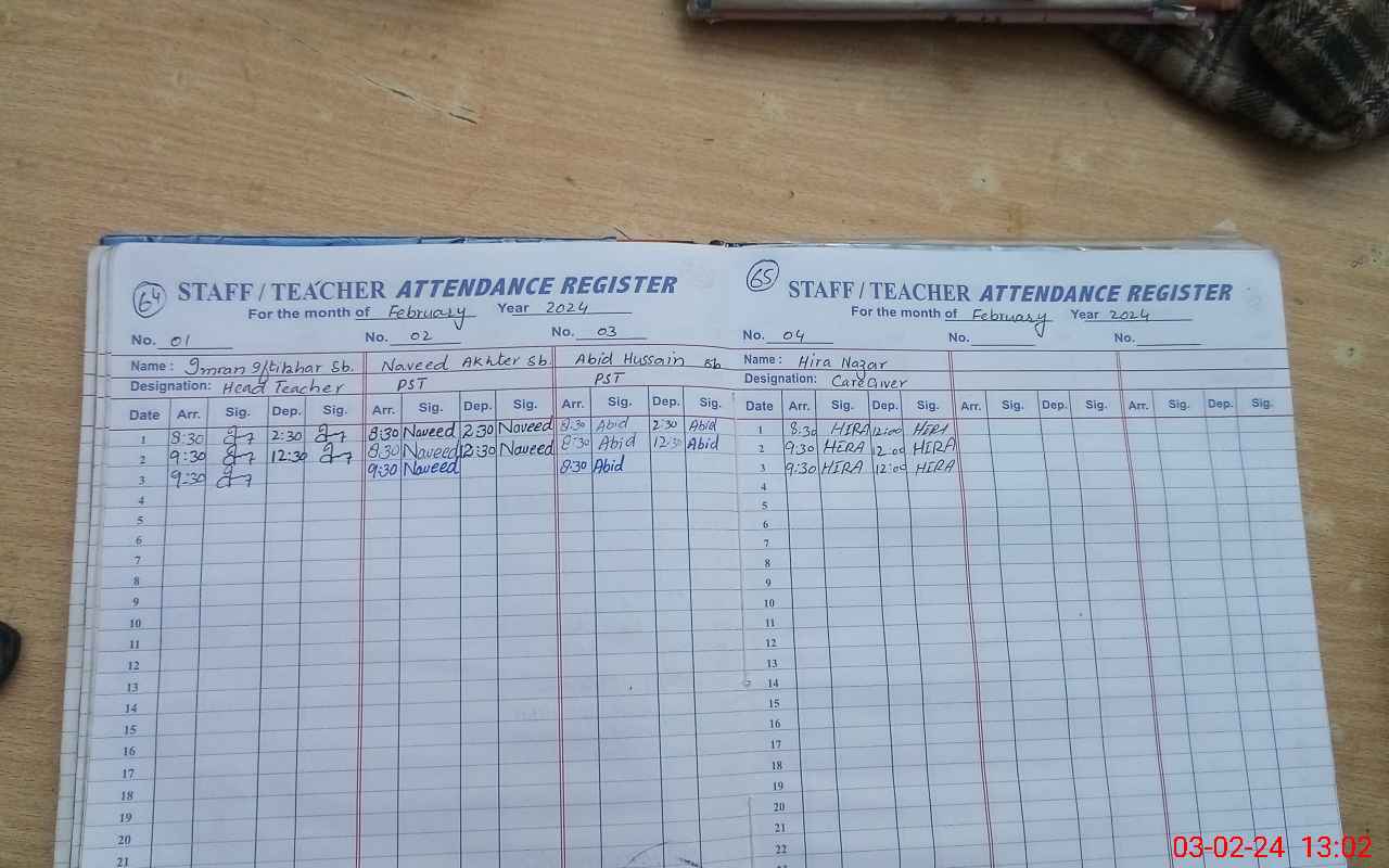| Total no. of Classrooms: 2 No. of Classrooms Used for Teaching: 2 No. of Classrooms Storing Old Furniture, FTBs, etc: 0Comments if Any: 02 washrooms are not functional and maintenance is required |