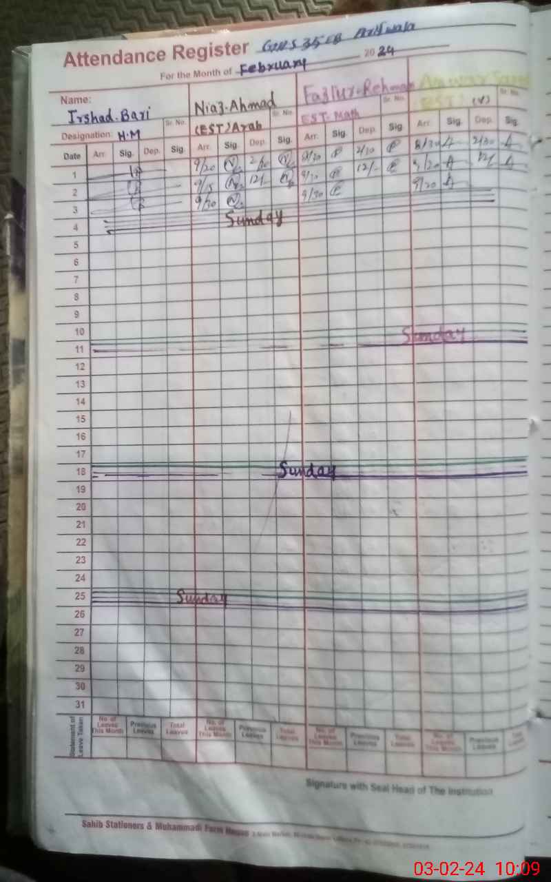 | CNIC | Full Name | Designation | R/C | Absence During Last Calender Month |
