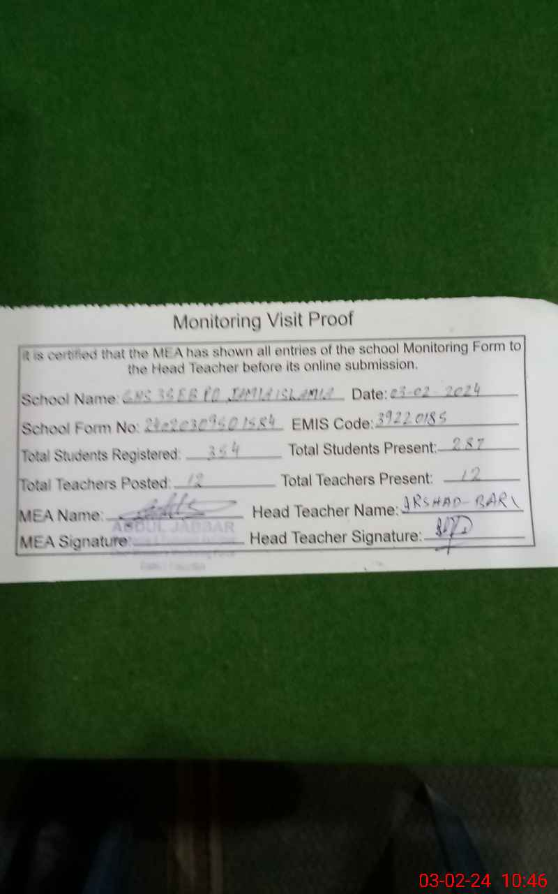 | EMIS Code: 39220185 | Name of School: GHS 35 EB ARIFWALA | |||