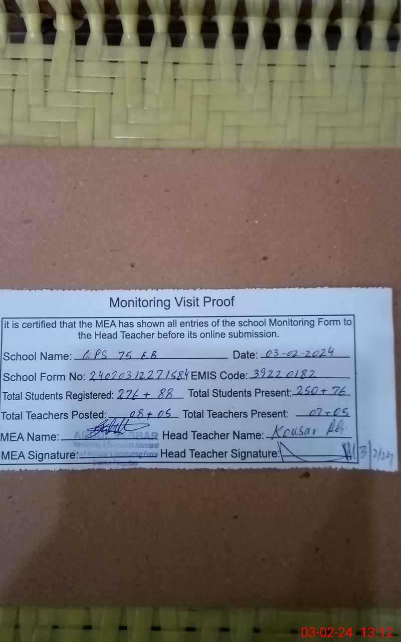 | EMIS Code: 39220182 | Name of School: GPS 75 EB P/O SAME | |||