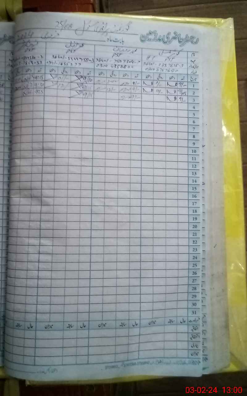 | CNIC | Full Name | Designation | R/C | Absence During Last Calender Month |