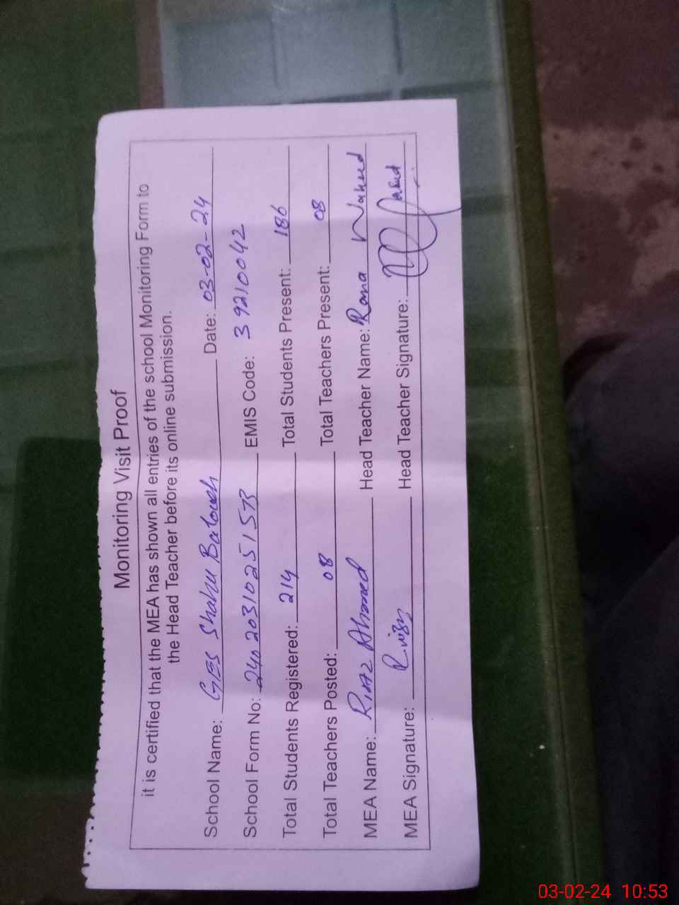 | EMIS Code: 39210042 | Name of School: GES SHAHU BALOUCH PO PAKPATTAN | |||