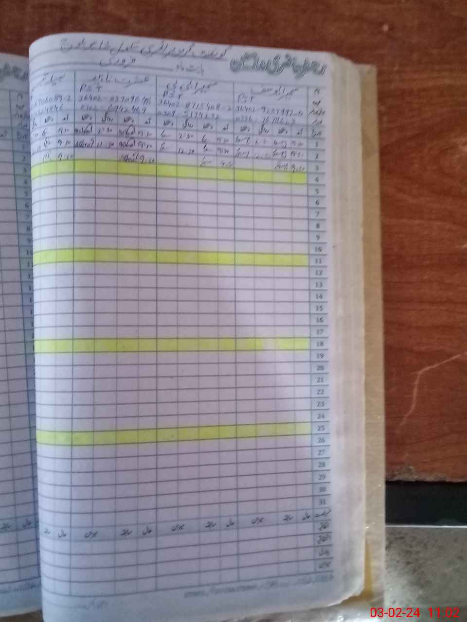 | CNIC | Full Name | Designation | R/C | Absence During Last Calender Month |