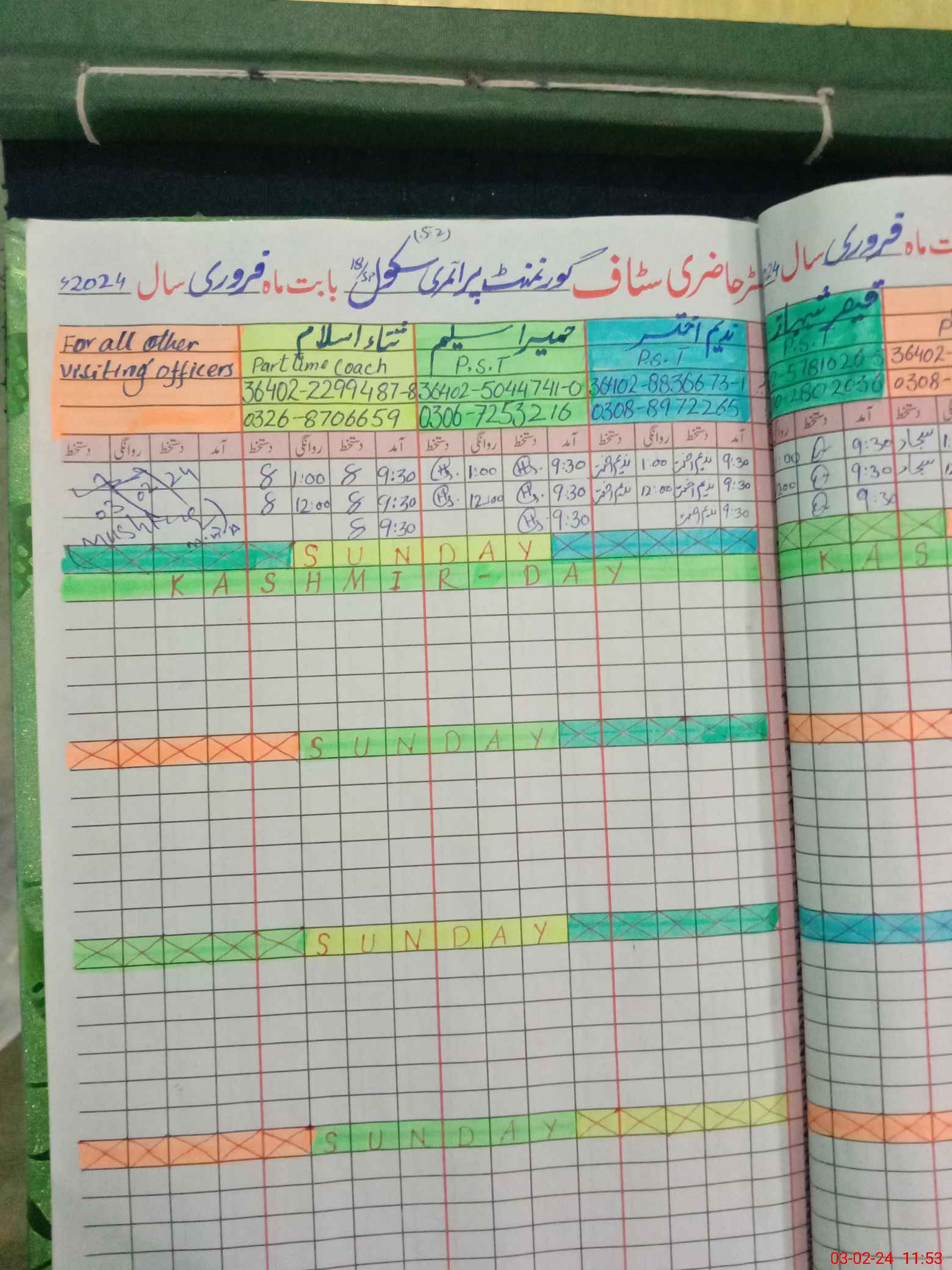 | CNIC | Full Name | Designation | R/C | Absence During Last Calender Month |