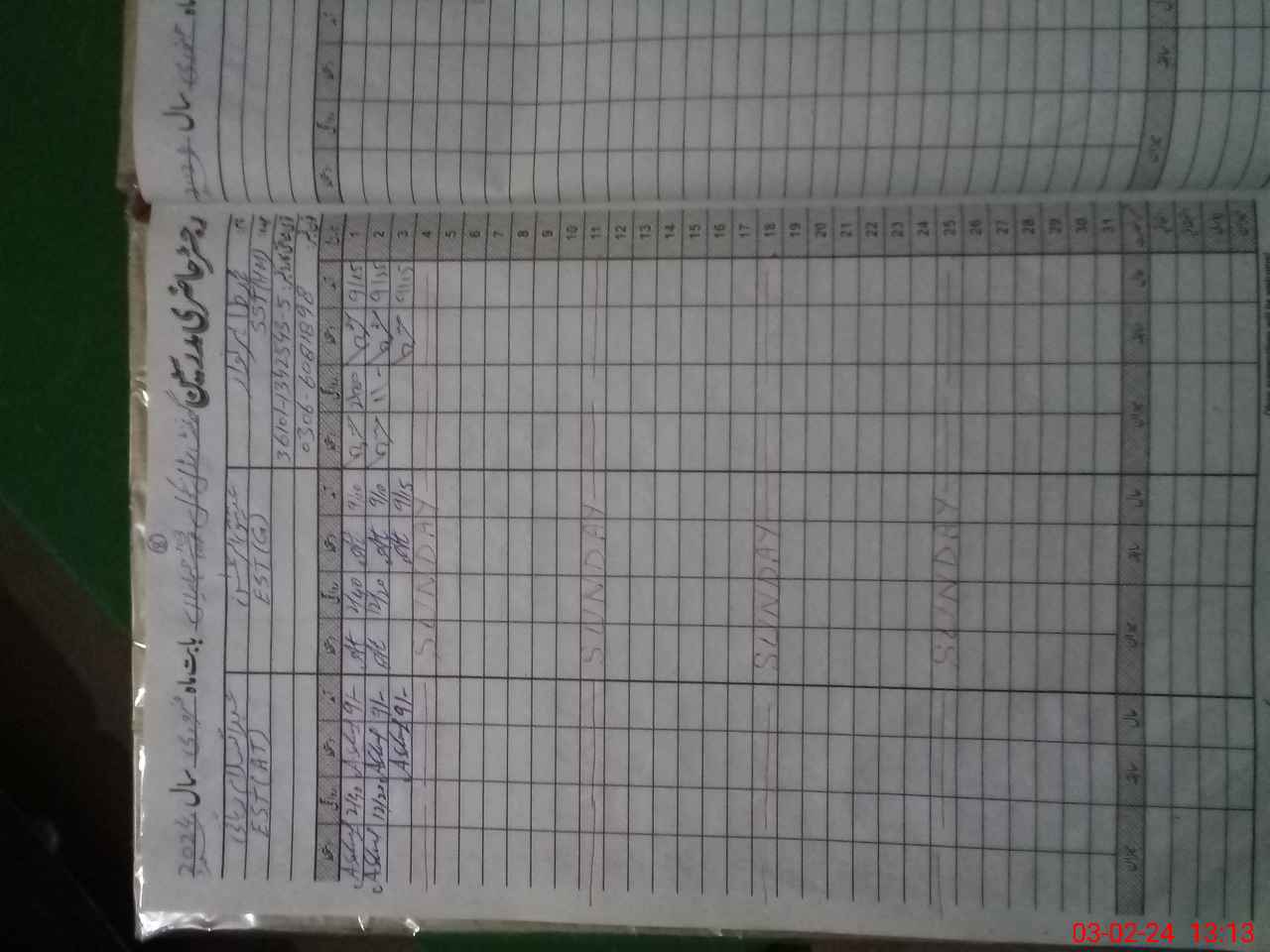 | CNIC | Full Name | Designation | R/C | Absence During Last Calender Month |