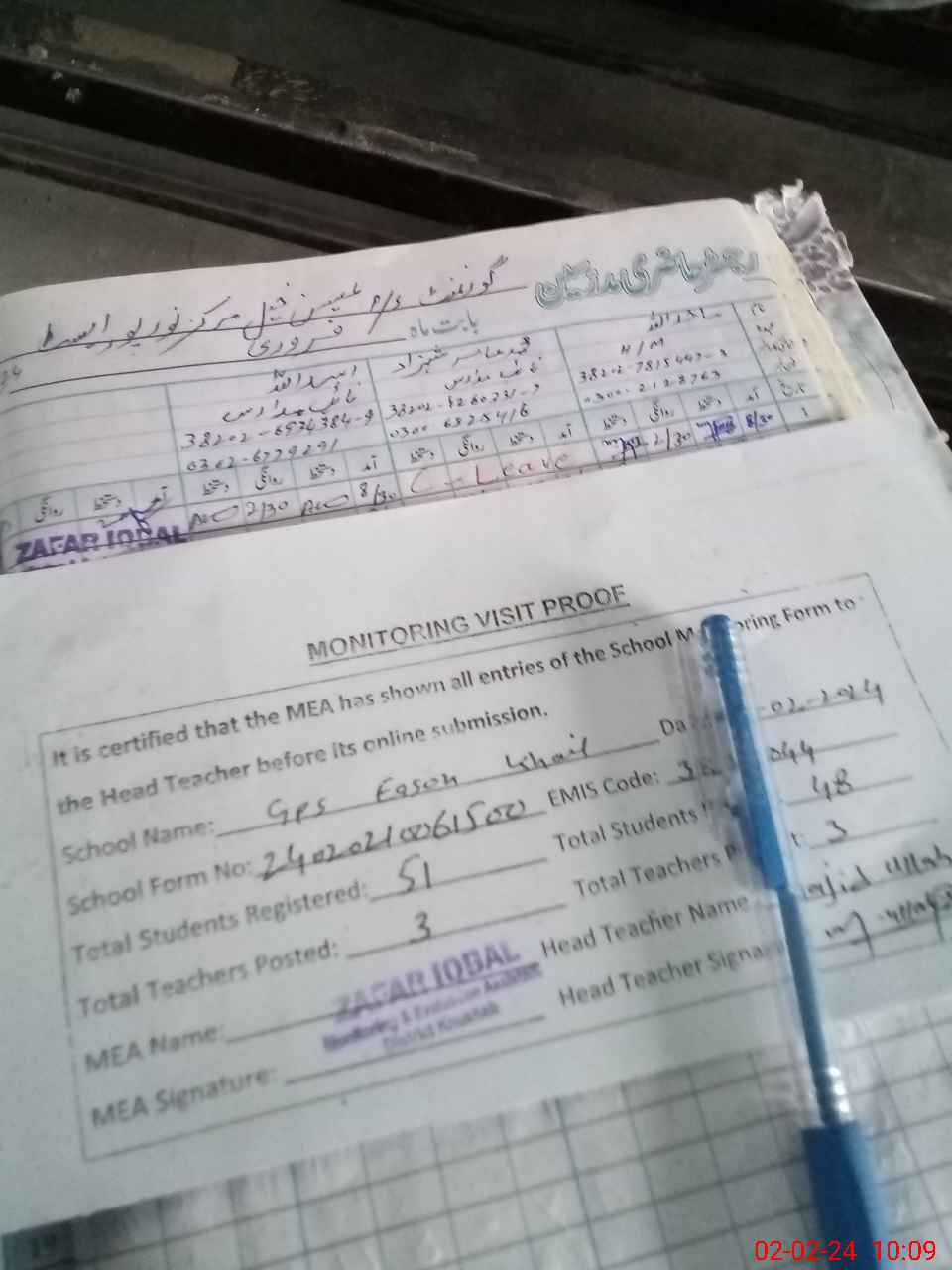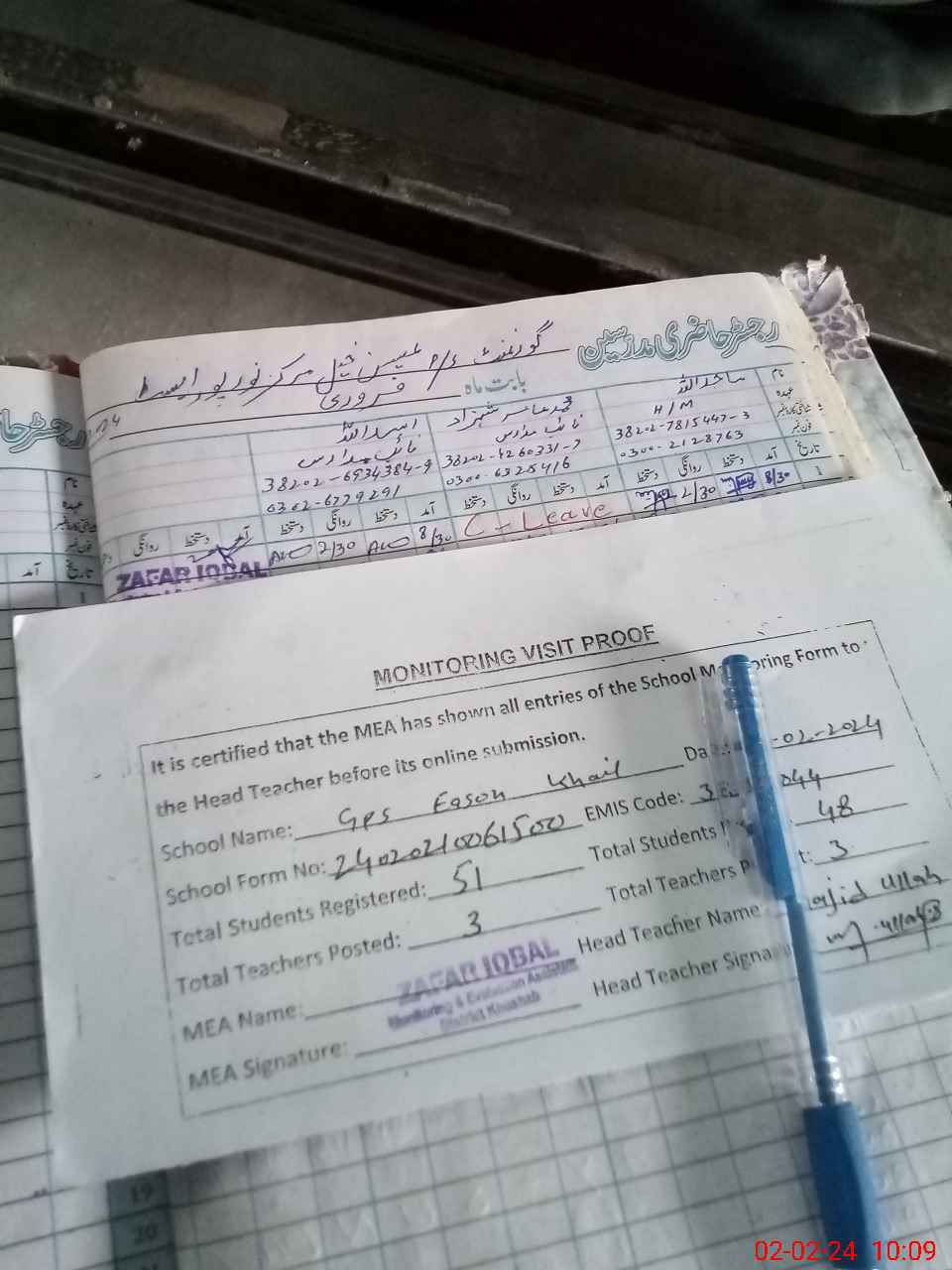 | EMIS Code: 38220044 | Name of School: GPS EASAN KHAIL | |||