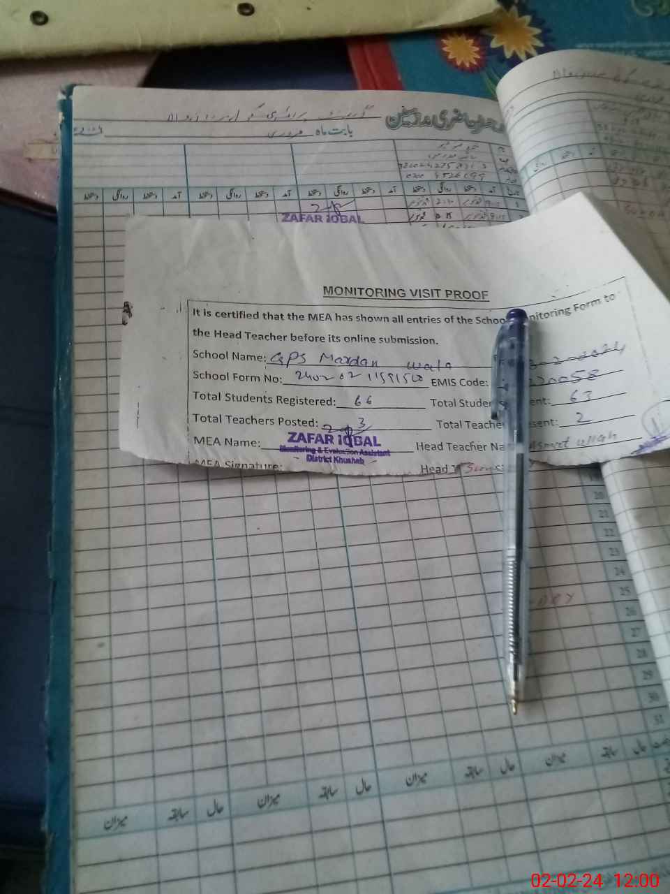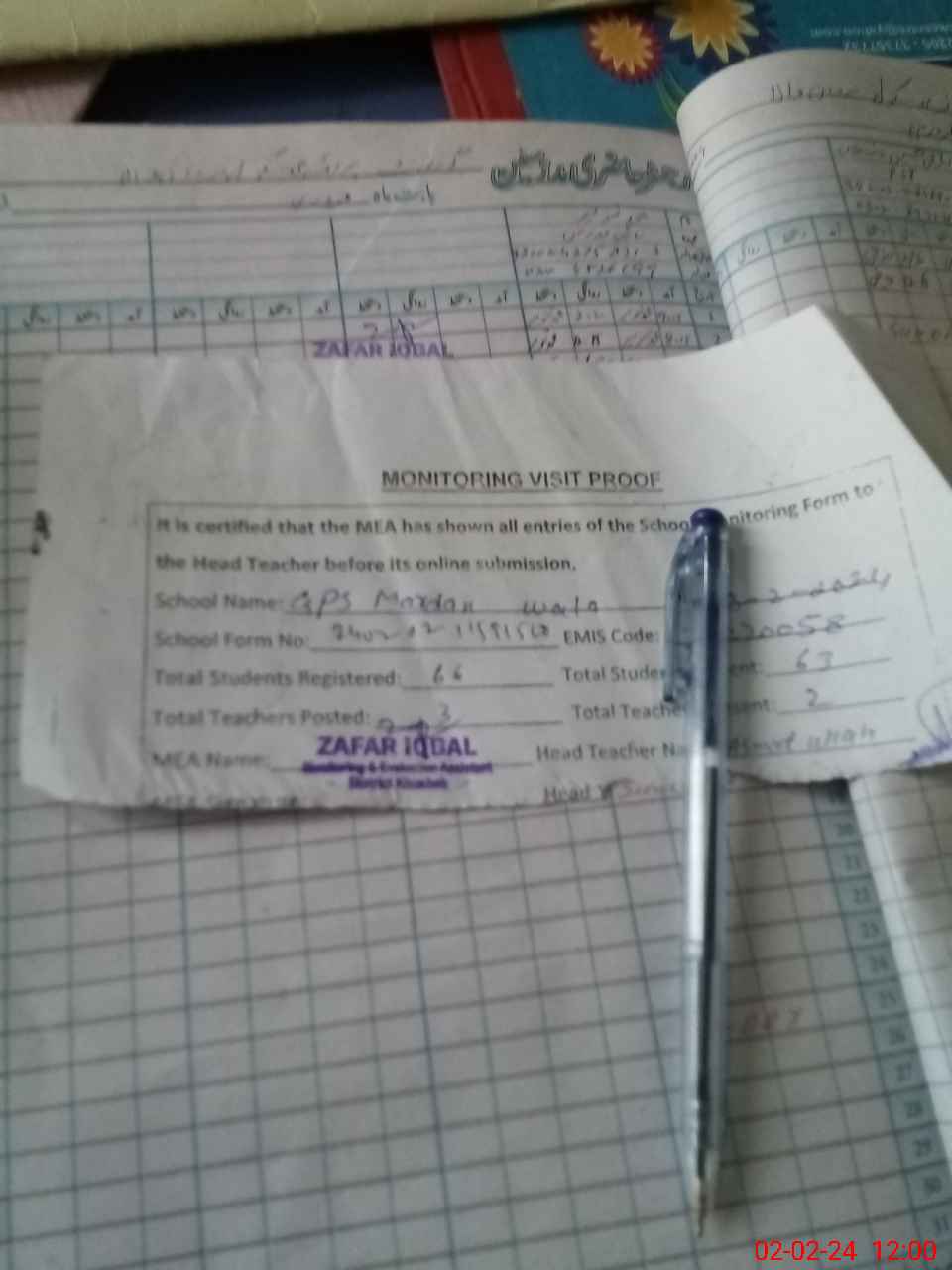 | Attendance Register | Head Teacher | MEA with School | Visit Proof |