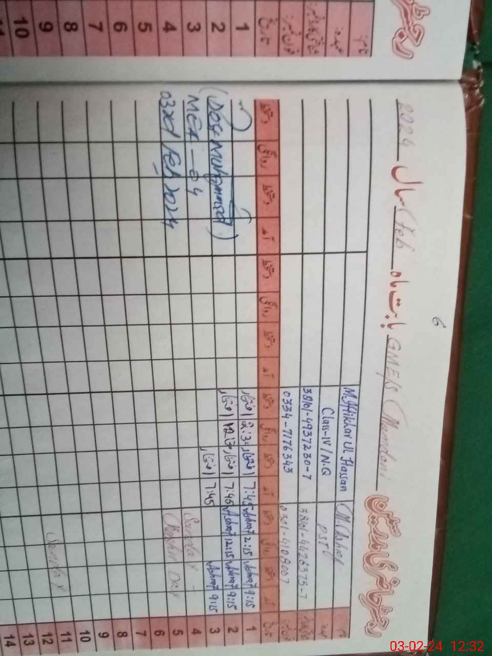| Name: SA**** NA**** Designation: (School Headmaster's/Headmistress's) SST Phone/Cell Number: 03**** |