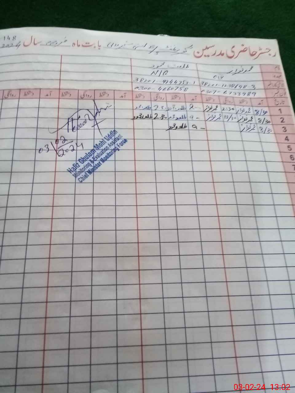| Name: Mu**** Ab**** Designation: (School Headmaster's/Headmistress's) S S T Phone/Cell Number: 03**** |