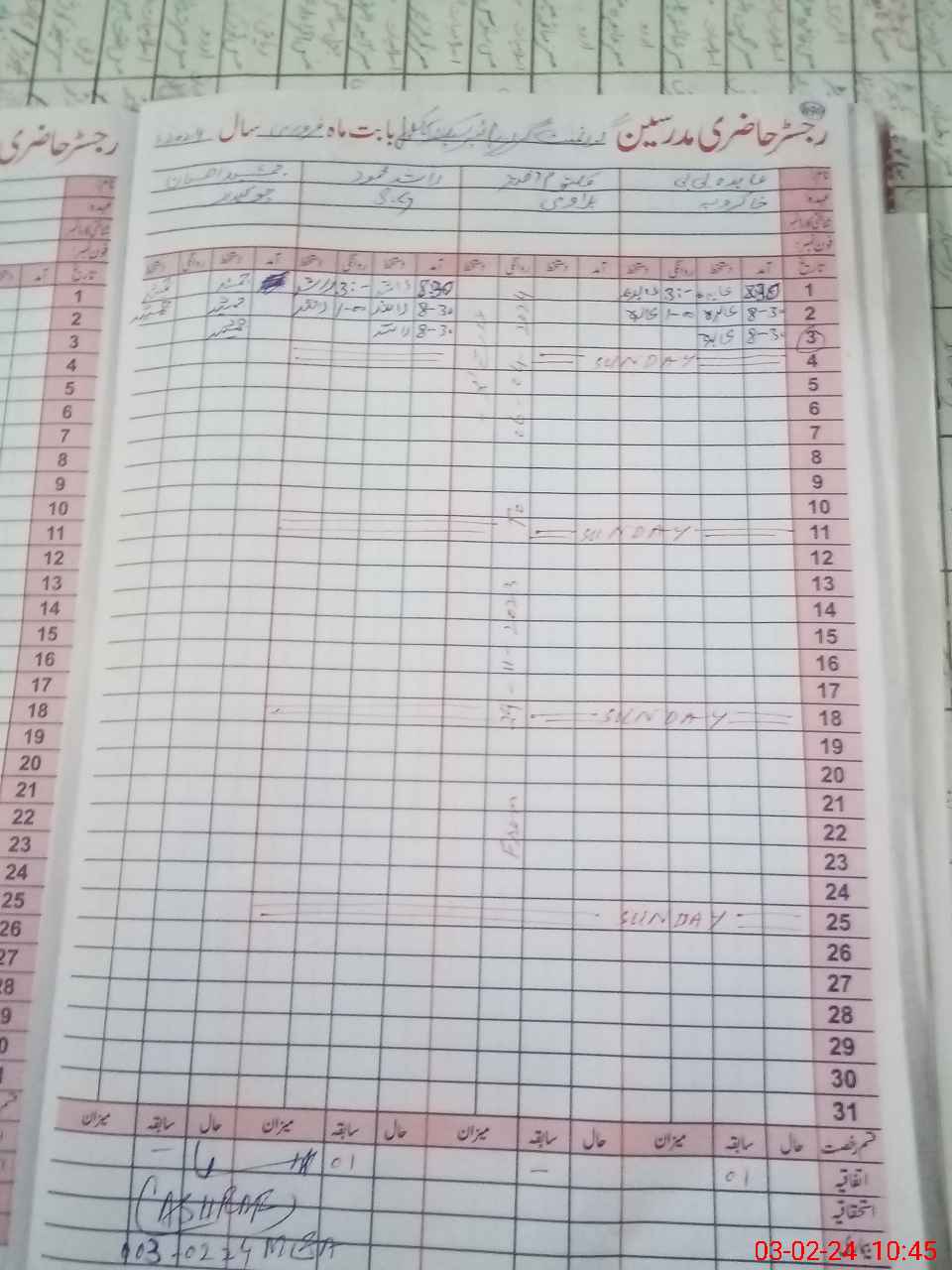 | CNIC | Full Name | Designation | R/C | Absence During Last Calender Month |