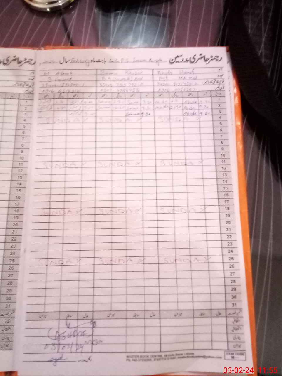 | CNIC | Full Name | Designation | R/C | Absence During Last Calender Month |