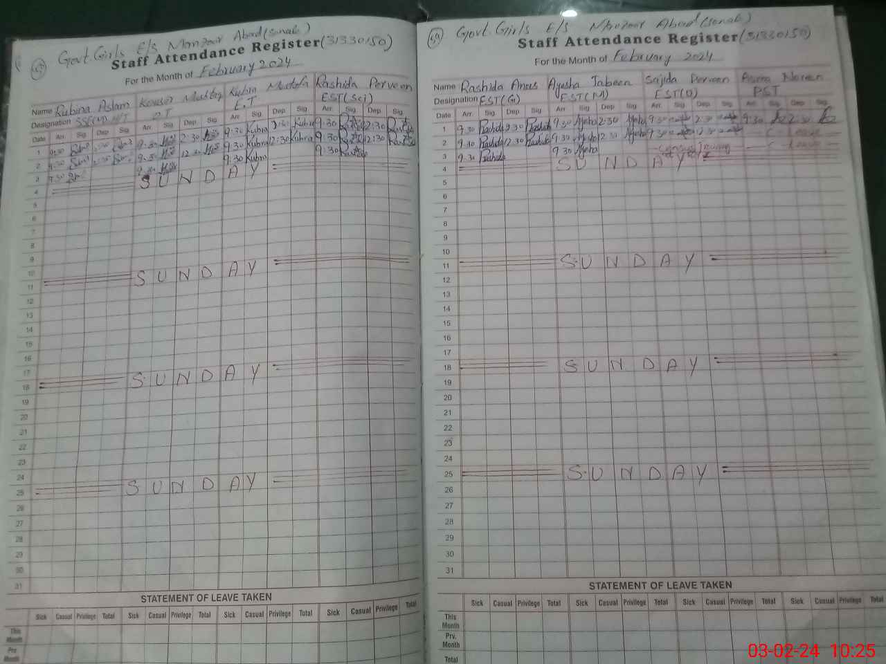| CNIC | Full Name | Designation | R/C | Absence During Last Calender Month |